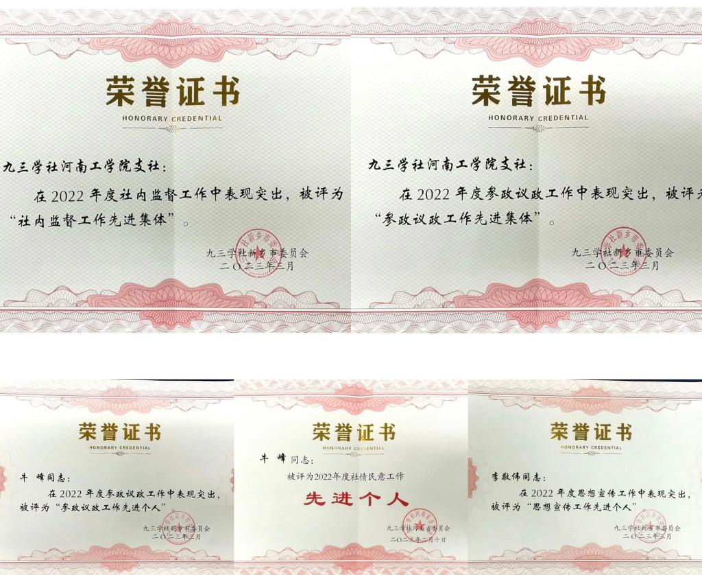 近日,我校民主党派基层组织和成员获得多项荣誉表彰。民盟支部和九三支社被所在市级组织评为盟务工作先进集体和社内监督工作及参政议政工作先进集体。民盟支部主委姬军荣、副主委张阿媛及盟员李玟瑶、郭朝博、王洪波被民盟市委评为参政议政工作、组织宣传工作及社会服务工作先进个人。九三支社主委牛峰被九三省委评为社情民意工作先进个人,牛峰和李敬伟被九三市委评为社情民意工作、参政议政工作及思想宣传工作先进个人。
