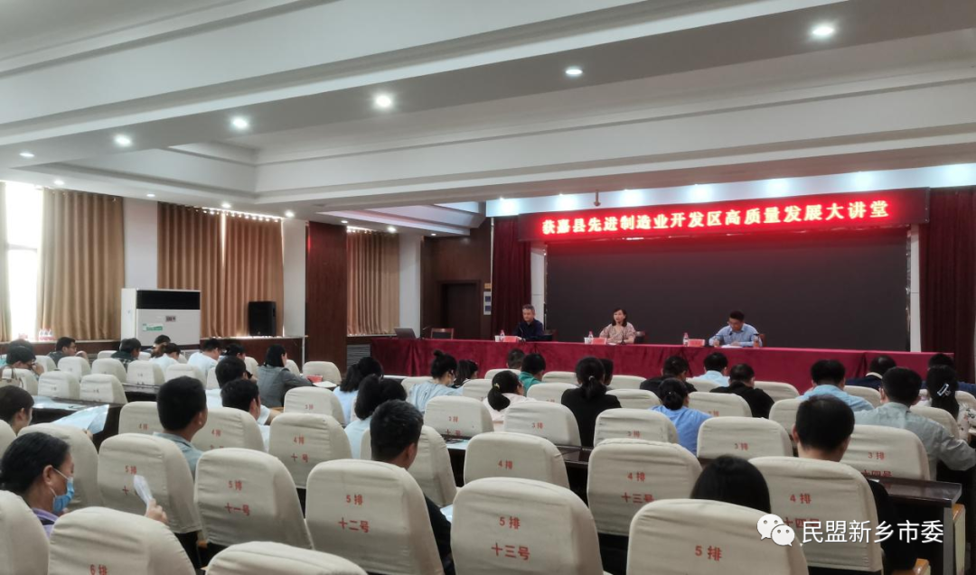 6月2日,民盟新乡市委员会赴获嘉县先进制造业开发区开展“开发区高质量发展大讲堂”专题培训暨调研活动。市人大常委、民盟新乡市委员会专职副主委王海燕,市政协常委、民盟新乡市委员会秘书长杨晓晖,市政协常委、民盟河南工学院支部主委、管理学院副院长姬军荣出席活动,获嘉县副县长许永法,开发区、科工局、商务局、各乡镇主管副职、全县133家规上企业和15家规下工业企业负责人参加活动。